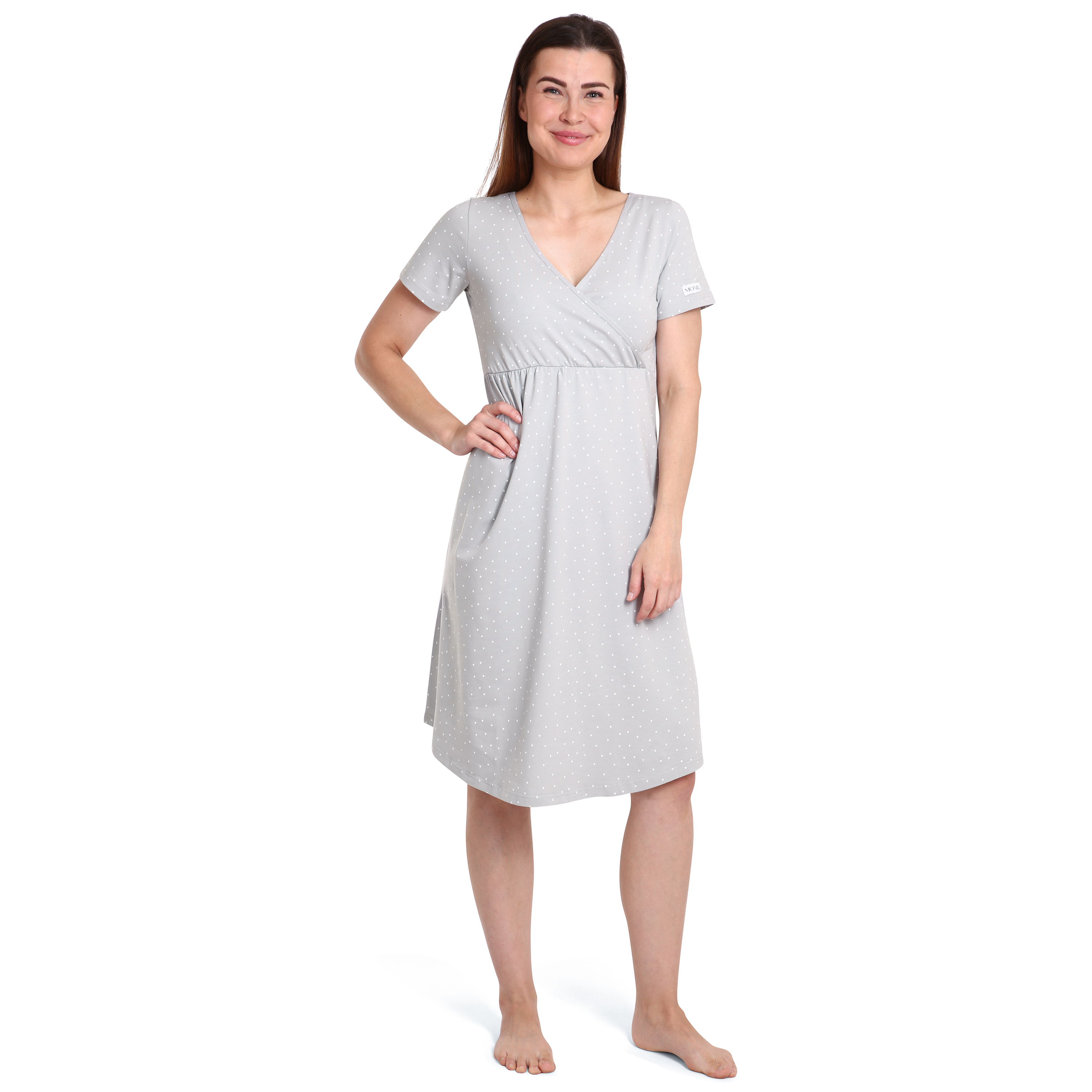 Dámská košilka a domácí šaty Moniel Dots šedá je těhotenská, kojící a mateřská zároveň. Je elastická a velmi pohodlná. Dokonale padne každé postavě. Má praktický střih pro pohodlné kojení a nošení ve dne i v noci. Ručně šitá v ČR. číst celé