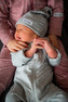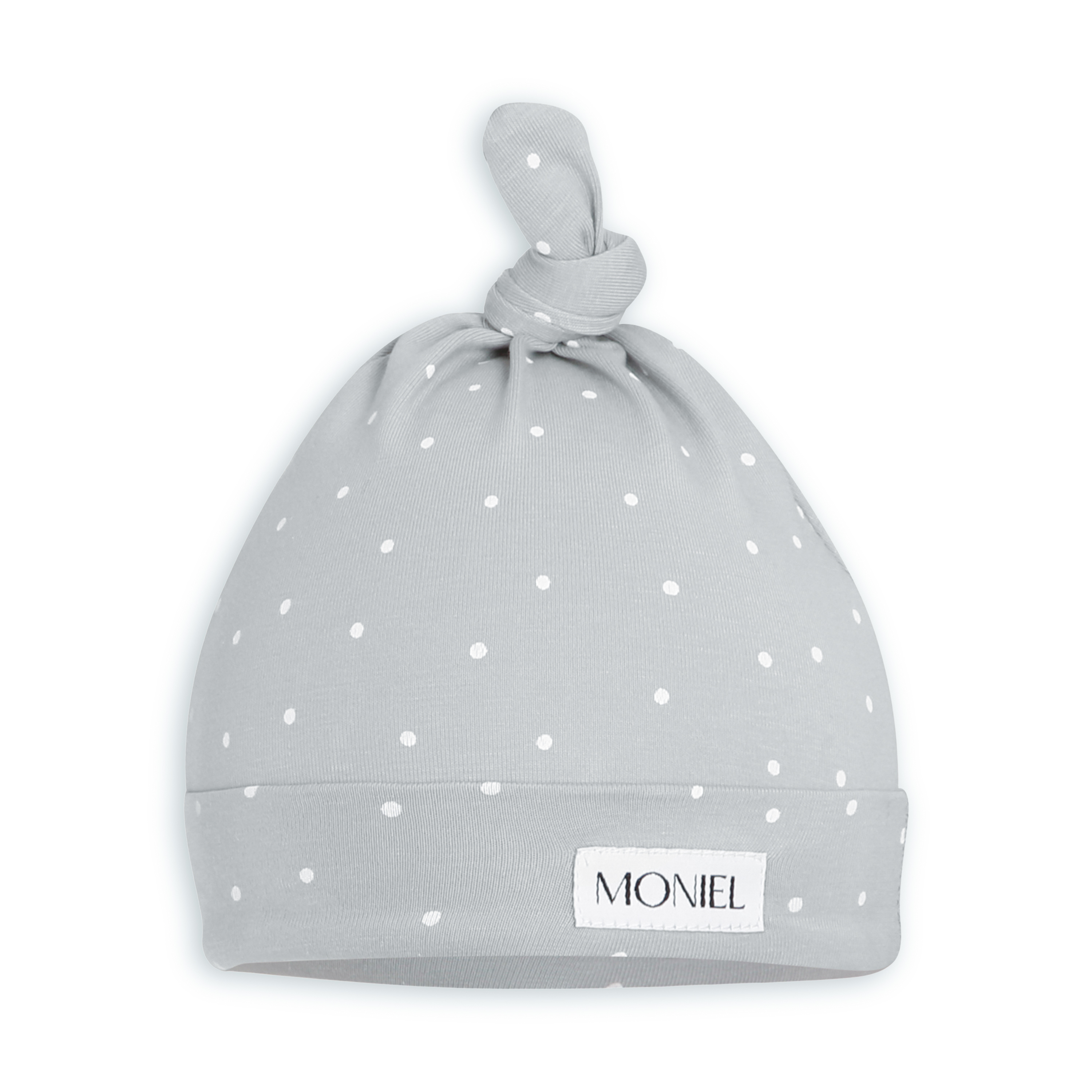 Moniel Dětská čepice Dots šedá je vhodná pro miminka od narození do 3-6 měsíců. Je elastická, perfektně drží na hlavičce a nesjíždí. Čepička má praktický uzel, který lze utáhnout dle potřeby a upravit velikost čepičky podle aktuální velikosti miminka. Ručně šitá v ČR.