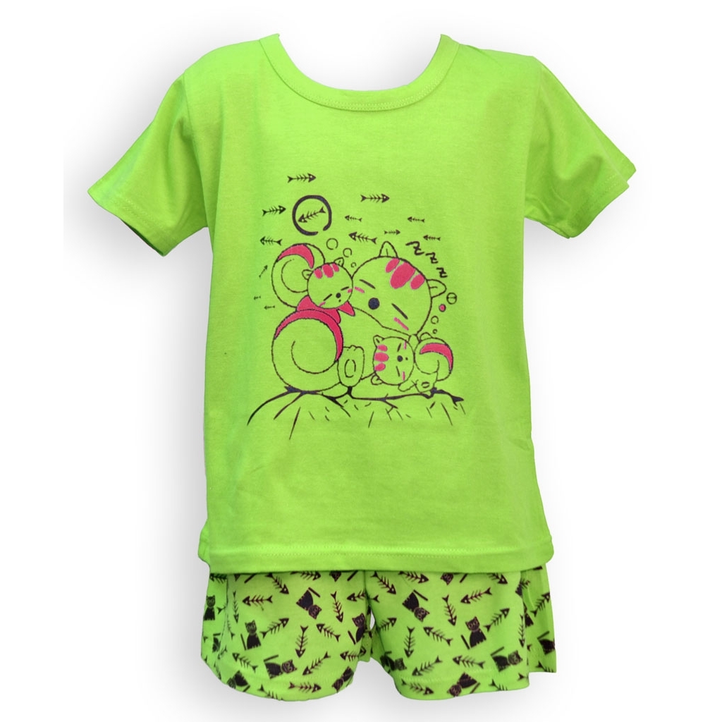 Dětské pyžamo s krátkým rukávem Londog Cats - zelené, 110
