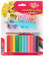 8 barev, 12 kulatých válečků modelovací hmoty (165 g), 6 vykrajovátek, 1 plastový nůž