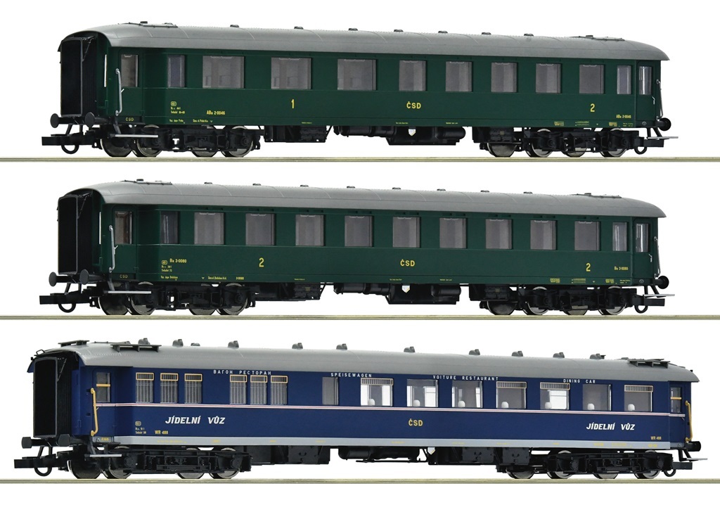 Roco Sada 3 ks osobních vagónů rychlíku DR - 6200036