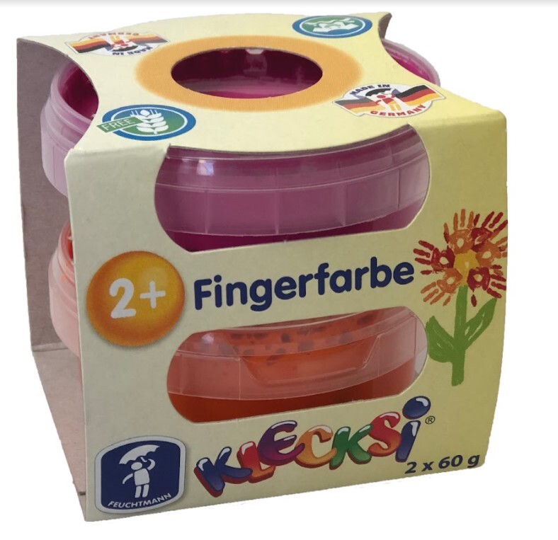 KLECKSi univerzální prstová barva pro holky a kluky. Set Minis obsahuje 2 kusy 60 g kelímků barvy Klecksi.