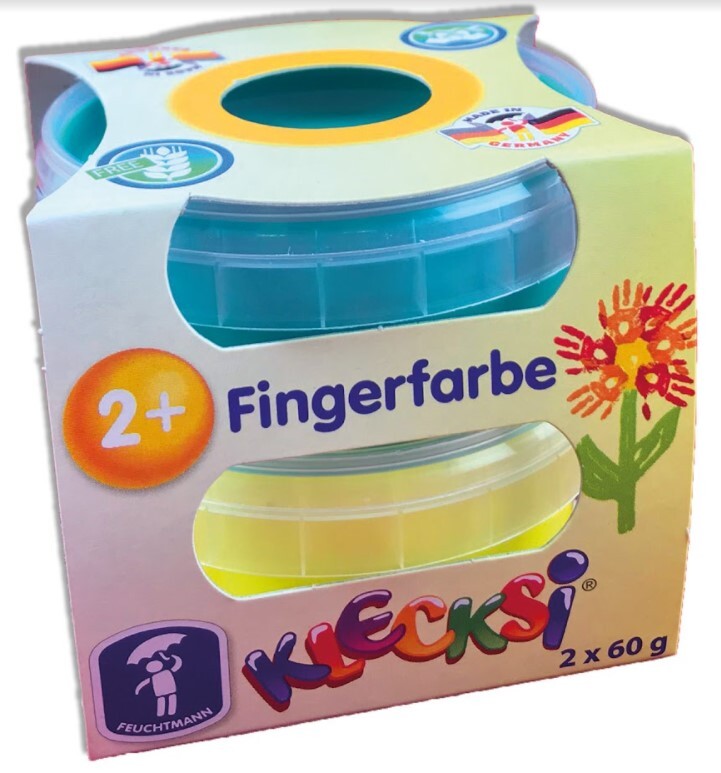KLECKSi univerzální prstová barva pro holky a kluky. Set Minis obsahuje 2 kusy 60 g kelímků barvy Klecksi.