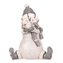 Sněhulák - polyresiová figurka, sedící, šedý obleček a čepka