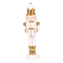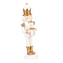 Figurka vojáka ve své bílo-zlaté uniformě, určena na postavení, vám přinese do domova neotřelou vánoční atmosféru plnou elegance a šarmu. Jeho půvabná postava držící dáreček a stojící v pozoru na kulatém stupínku okouzlí každého pozorovatele a dodá vašemu prostoru jedinečný a nadčasový vzhled. Zlaté detaily, jako jsou boty, knoflíky a spodní část klobouku, nejenže podtrhují jeho noblesu, ale také dodávají této figurce zvláštní punc, kterým zaujme a obohatí váš vánoční interiér. Buďte nápadití a prokažte své originální myšlenky v praxi a nechte vystavit obdivu tuto nádhernou figurku vojáka, která upoutá zraky všech návštěvníků.
