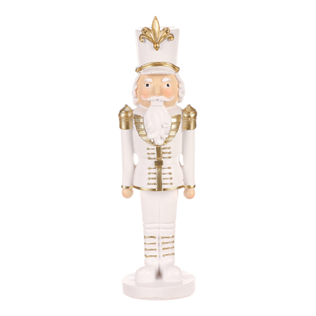 Přineste do svého vánočního interiéru dávku elegance s naším vojákem v bílé uniformě velikosti „M“. Tato půvabná figurka, vyrobena z polyresinu, zaujme svou bílo-zlatou kombinací barev a detaily své slušivé uniformy. Ta je zdobená zlatými knoflíky a dalšími doplňky, přinášející do vašeho domova luxusní nádech. Bílé vousy a vlasy dodávají postavě nadčasový a noblesní vzhled. Tato soška na postavení je originální a netradiční vánoční dekorací, která okouzlí všechny ostatní svou exkluzivitou. Umístěte ji na poličku, stůl nebo na jiné vhodné místo a přidejte do své vánoční výzdoby prvek elegance a noblesy.
