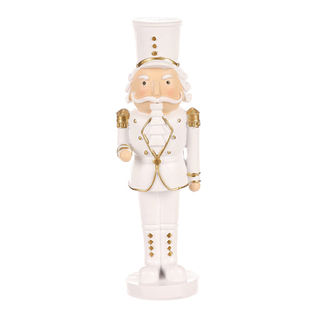 Přineste do svého vánočního interiéru dávku elegance s naším vojákem v bílé uniformě velikosti „S“. Tato půvabná figurka, vyrobena z polyresinu, zaujme svou bílo-zlatou kombinací barev a detaily své slušivé uniformy. Ta je zdobená zlatými knoflíky a dalšími doplňky, přinášející do vašeho domova luxusní nádech. Bílé vousy a vlasy dodávají postavě nadčasový a noblesní vzhled. Tato soška na postavení je originální a netradiční vánoční dekorací, která okouzlí všechny ostatní svou exkluzivitou. Umístěte ji na poličku, stůl nebo na jiné vhodné místo a přidejte do své vánoční výzdoby prvek elegance a noblesy.