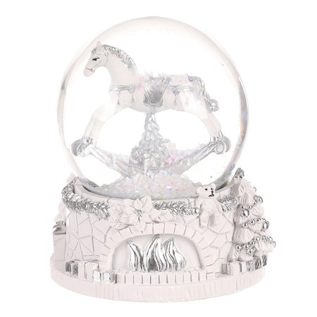 Sněžítko nabízí dokonalou kombinaci bílé a stříbrné barvy, která působí slavnostně a vkusně. Ve středu je umístěn malý houpací koník - detail, který dodává celé dekoraci na originalitě a šarmu. Po zatřesení se uvnitř baňky roztočí třpytivá sněhová bouře, která zahalí koníka sněhovými vločkami a vytvoří tak nádherný vizuální efekt.