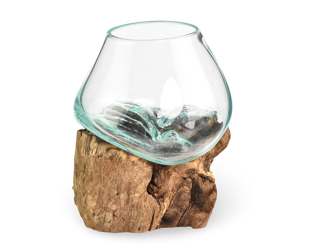 Skleněná nádoba na dřevě - malá - var. N