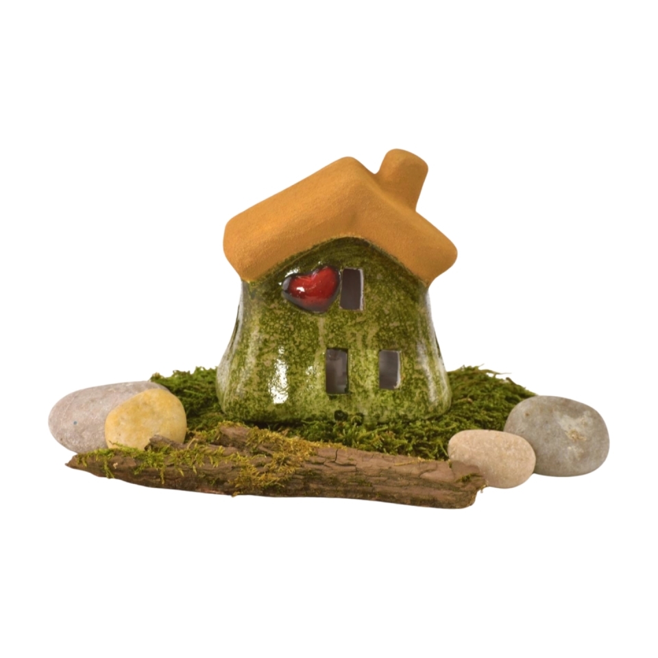 Kouzelné keramické domečky s LED světýlkem Rozměry: výška 10 cm, šíře 9 cm okénka jsou z přední části a z každého boku, zadní část je plná