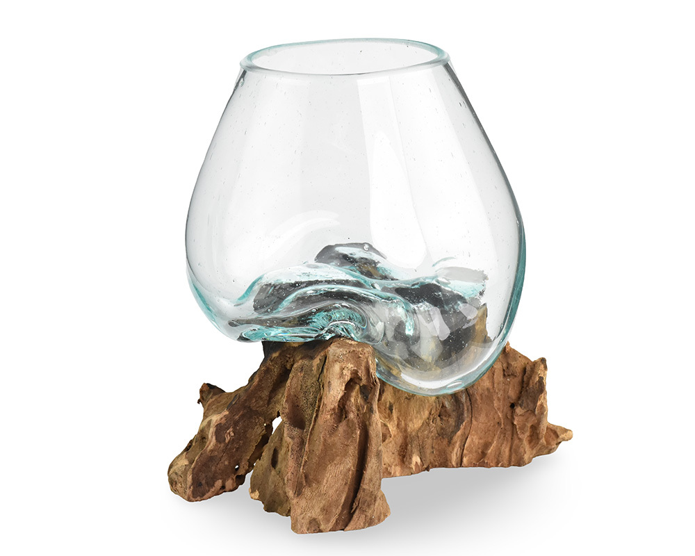 Tato skleněná nádoba spojuje tavené sklo a přírodní dřevo v praktický a estetický doplněk do interiéru. Sklo je ručně tvarované tak, aby přesně zapadlo na dřevěný podklad, což vytváří příjemný kontrast mezi chladným sklem a teplým dřevem. Každý kus je originální díky přirozené struktuře dřeva a jedinečnému tvaru skla.Nádoba dodá prostoru jednoduchý a přírodní prvek, který se hodí do moderních i klasických interiérů.