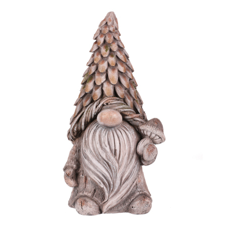Trpaslík s houbou v ruce, celý z magnesia, je ideální zahradní dekorací, která přinese příjemné oživení do vašeho venkovního prostoru. Díky svému neutrálnímu barevnému vzhledu se skvěle hodí do každého kouta zahrady, balkónu nebo terasy.