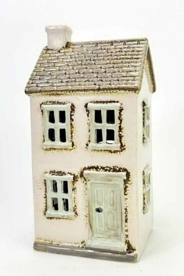 Keramický domek na čajovou svíčku, bílý 19x9,5x8 cm