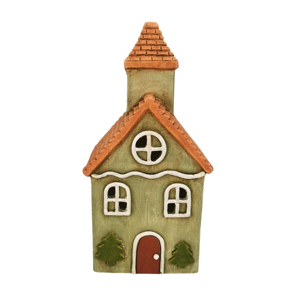 Světle zelený keramický domeček LEDKrásná dekorace, kterou lze využít k celoročnímu použití.Propracované detaily a sytá barva.Rozměry:výška: 38 cmšíře: 16 cmhloubka: 13 cmmateriál: keramikabarva: světle zelená, cihlová