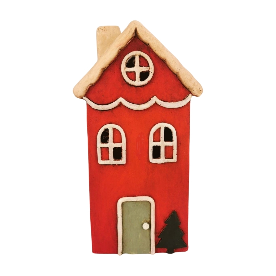 Červený keramický domeček LEDKrásná dekorace, kterou lze využít k celoročnímu použití.Propracované detaily a sytá barva.Rozměry:výška: 38 cmšíře: 15,5 cmhloubka: 13 cmmateriál: keramikabarva: červená