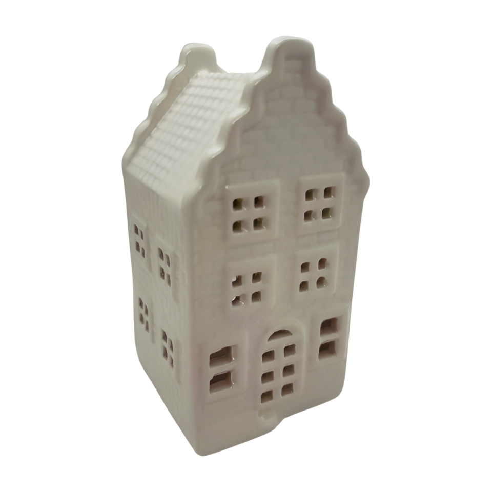 Keramický domeček na čajovou svíčku, bílý, 14,5 cm
