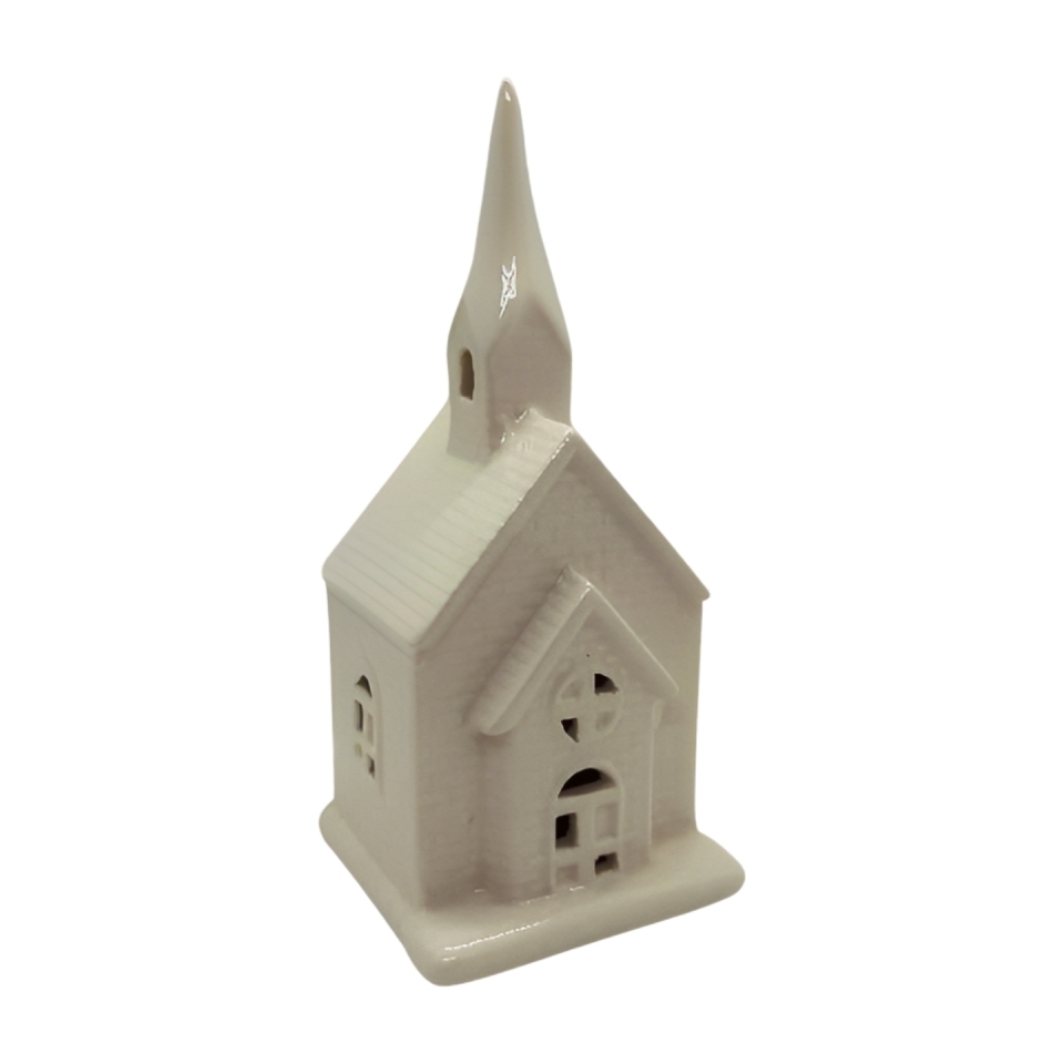 Keramický domeček na čajovou svíčku - kostel, bílý, 20,8 cm