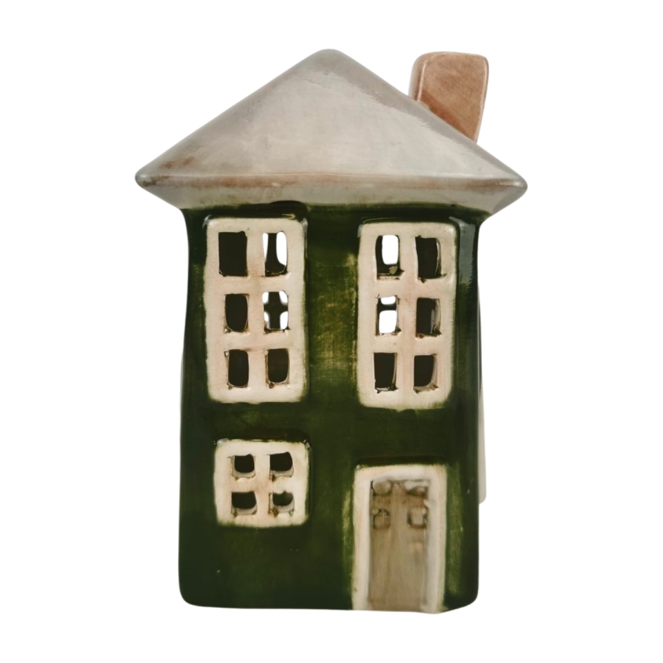 Keramický domeček LED, zelený, 12,7 cm