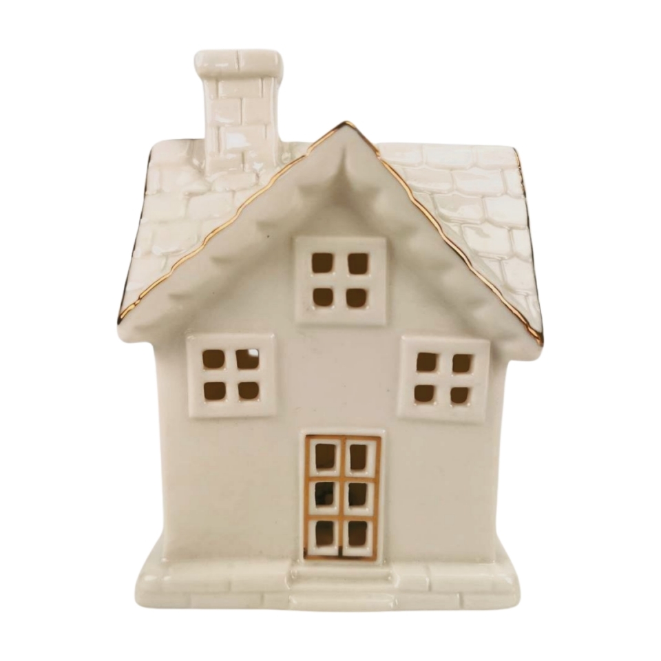 Bílý keramický LED domeček 23,2 x 16,2 cm