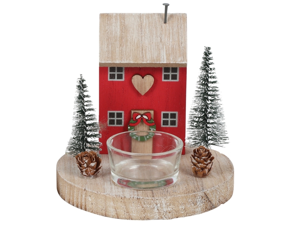 Dřevěný domeček Tasha červený na čajovou svíčku 12,5 x 12 cm