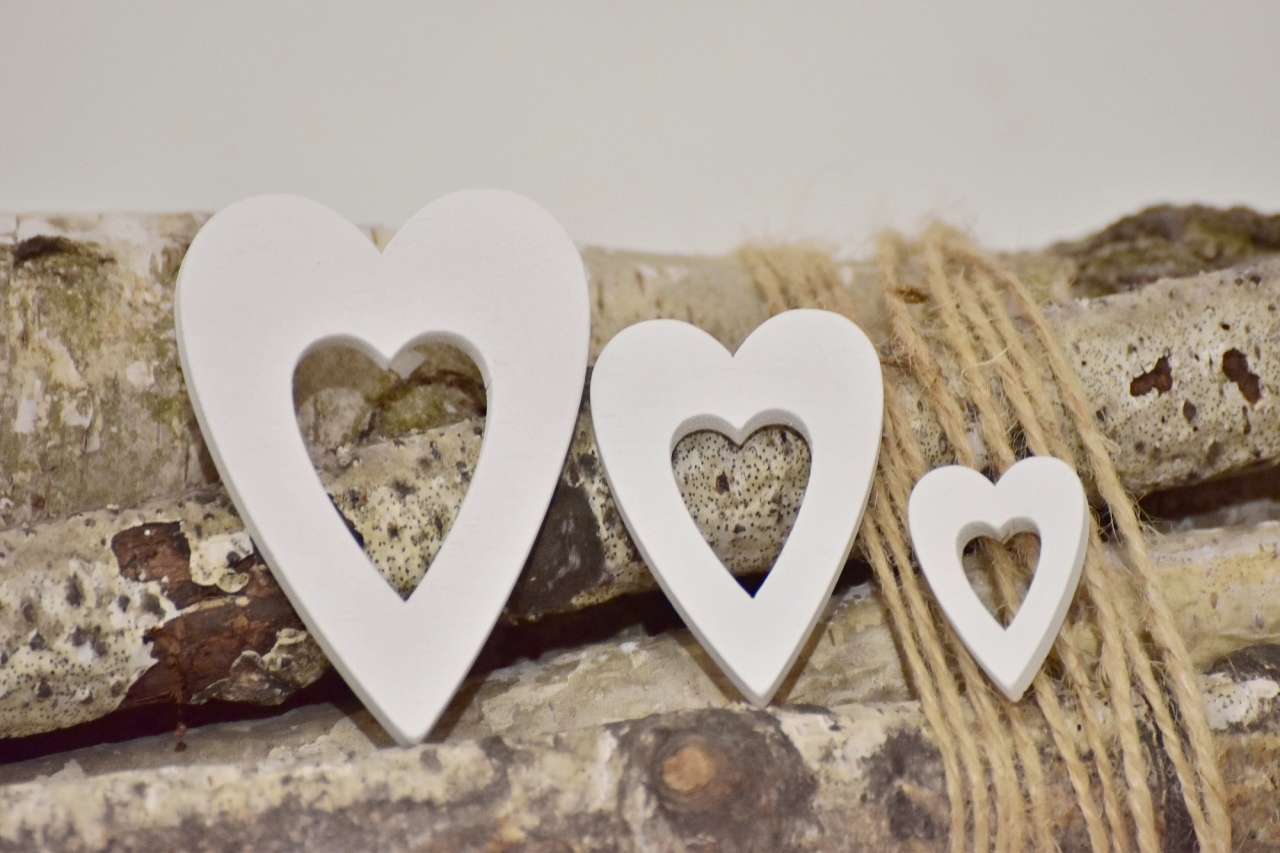 - Sada obsahuje 20 ks dřevěných srdíček ve třech velikostech