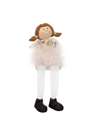 Holčička s péřovou sukýnkou, visící nohy, v růžové barvě, polyresin.
