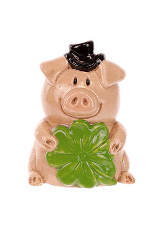 Prase pro štěstí - keramické se čtyřlístkem- kasička.