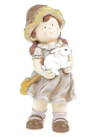 Houbová holčička s králíčkem, zahradní magneziová keramika.