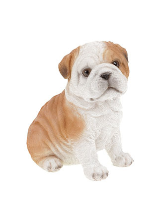 Francouský buldoček v hnědobílé barvě, sedící, polyresinová dekorace