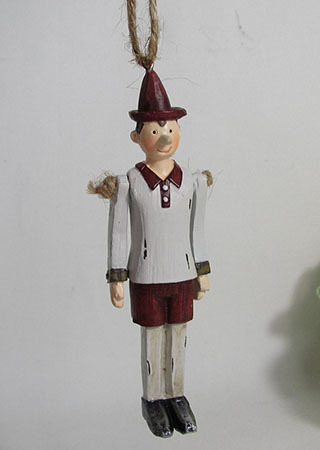 Panáček Pinokio na zavěšení, pohyblivé ruce, polyrezinový