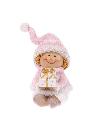 Kluk s dárkem, polyresinová vánoční dekorace, růžová barva.