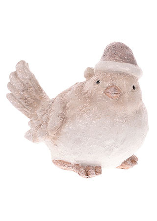 Ptáček s čepicí, zimní dekorace z polyresinu