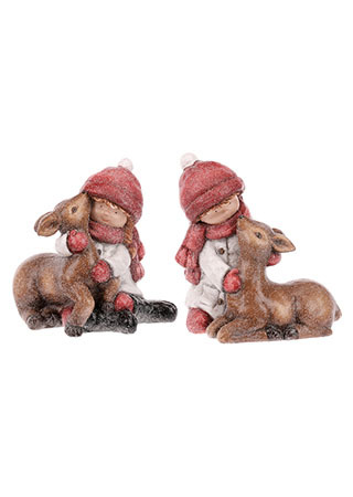 Holčička se srnkou vánoční dekorace, magnéziová keramika