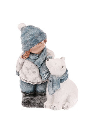 Holčička s ledním medvěděm, vánoční dekorace, magnéziová keramika