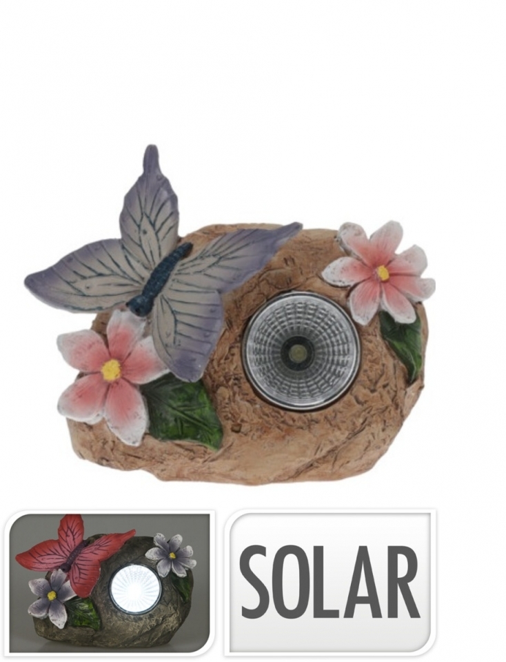 Solární kámen s fialovým motýlkem 10x11,5x5,5 cm