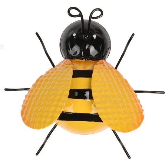 Dekorace do interiéru i ven - kovová včelka na postavení.