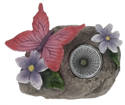Solární kámen s červeným motýlkem 10x11,5x5,5 cm