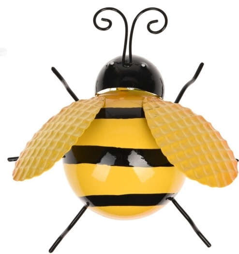 Dekorace do interiéru i ven - kovová včelka na postavení.