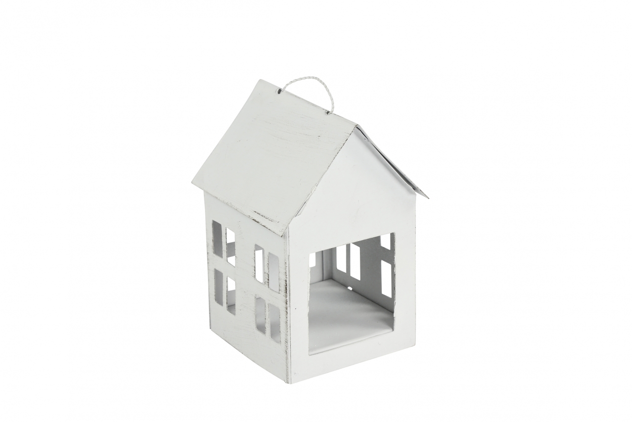 Kovový domeček na čajovou svíčku, bílý 10x6x7 cm