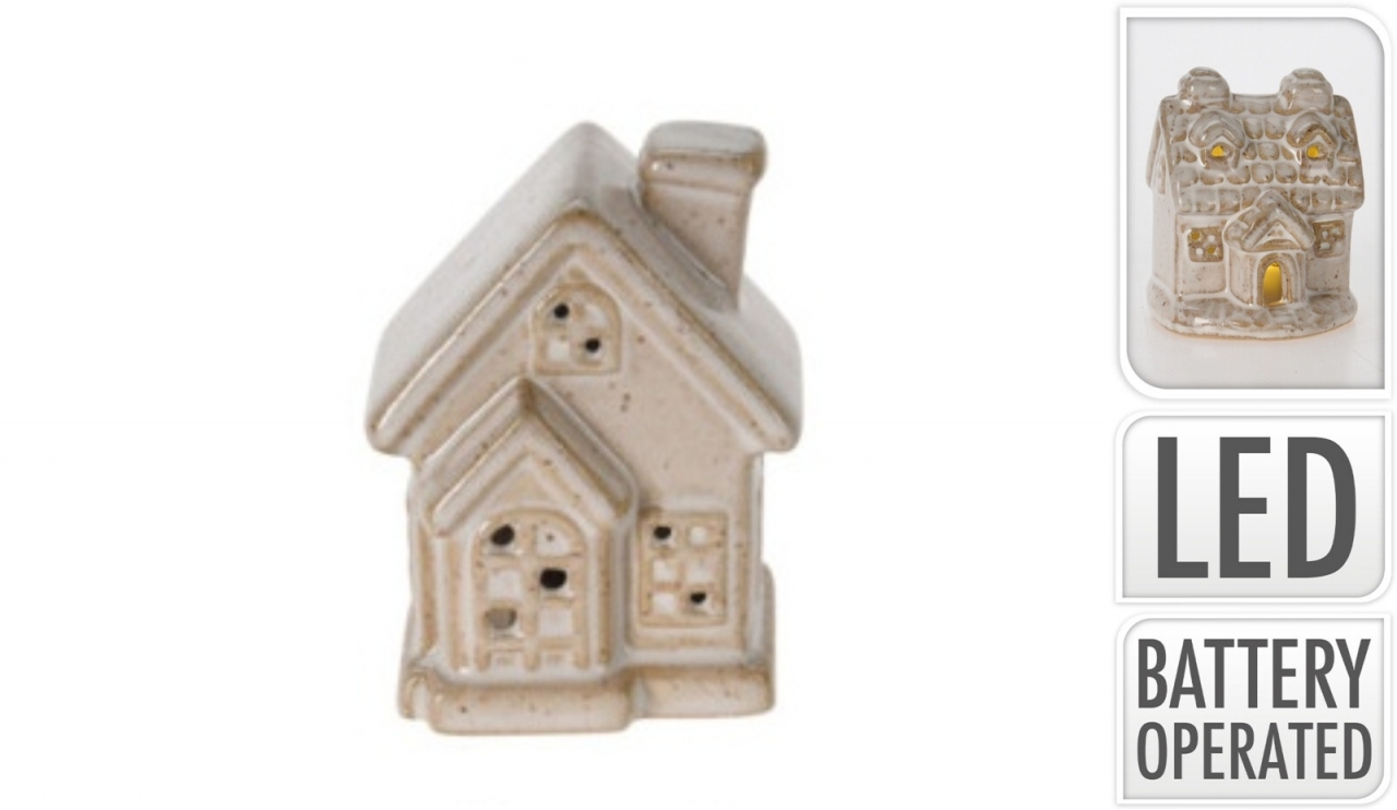 Porcelánový domeček s LED osvětlením. Napájení na 2x LR44 baterie (součástí výrobku).
