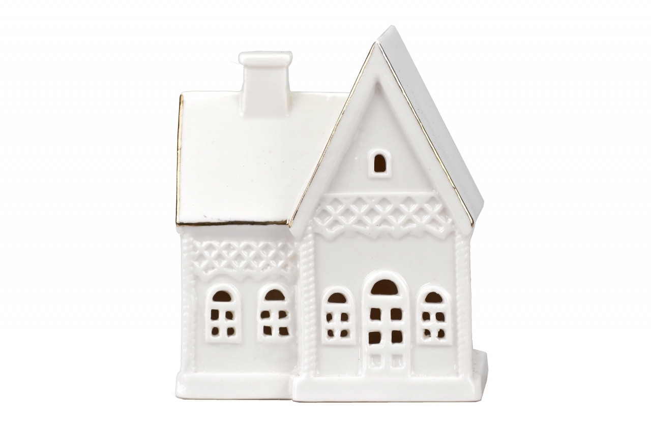 Dekorativní domeček s LED osvětlením. Barva světla teplá bílá. Napájení bateriemi 2xLR44, baterie jsou součástí výrobku.