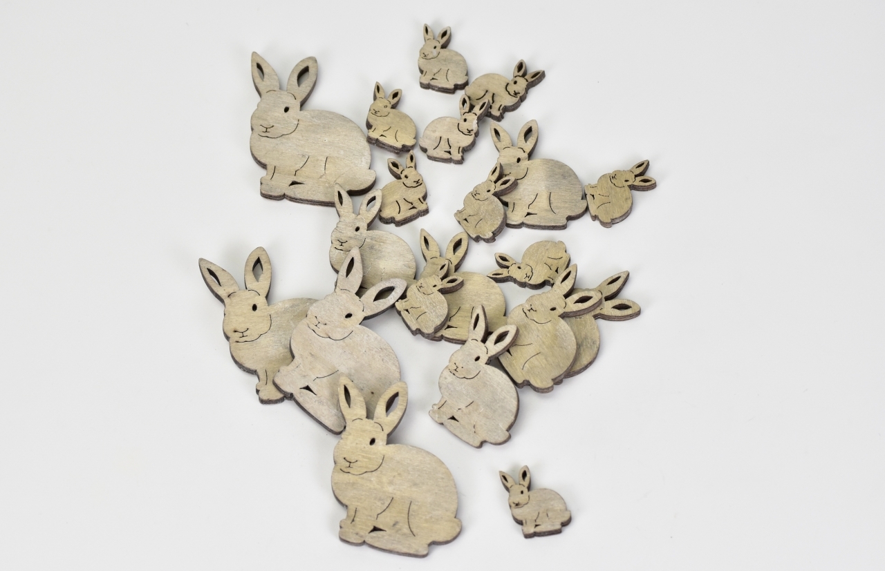 Sada 20 ks dřevěných zajíčků z překližky. Přírodní polotovar k dalšímu dekorování.