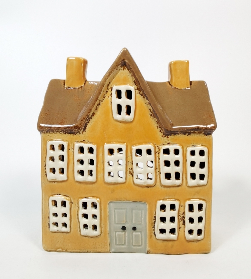Keramický domek na čajovou svíčku. Tlumené světlo čajové svíčky prosvítá okýnky a vytváří pohodovou atmosféru. Svícny můžete různě kombinovat a vytvořit si své vlastní městečko.