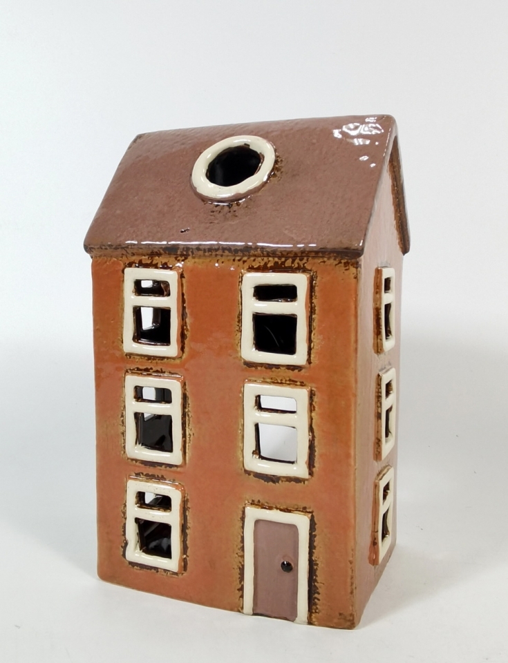 Keramický domek na čajovou svíčku, cihlový 18x11x9 cm