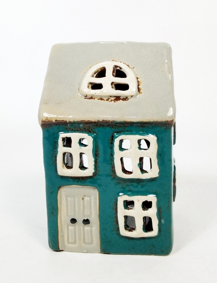 Keramický domek na čajovou svíčku, tyrkysový 12x8x7 cm