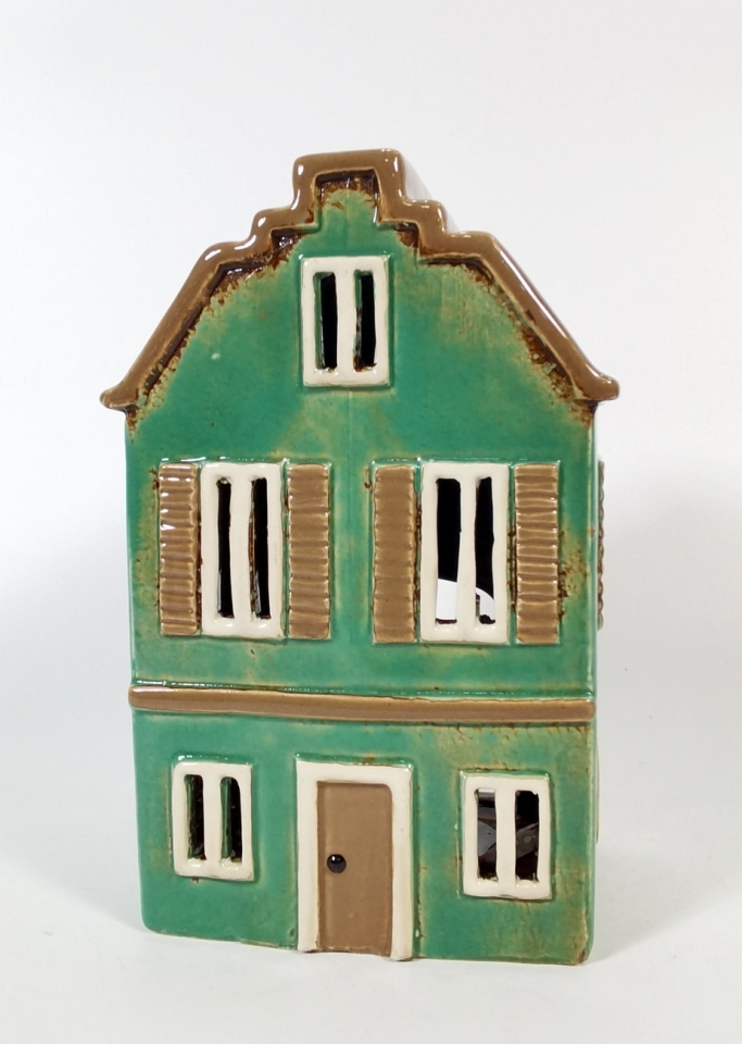 Keramický domek na čajovou svíčku. Tlumené světlo čajové svíčky prosvítá okýnky a vytváří pohodovou atmosféru. Svícny můžete různě kombinovat a vytvořit si své vlastní městečko.