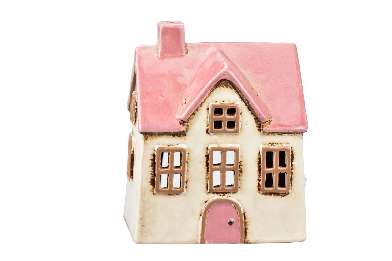 Keramický domek na čajovou svíčku. Tlumené světlo čajové svíčky prosvítá okýnky a vytváří pohodovou atmosféru. Svícny můžete různě kombinovat a vytvořit si své vlastní městečko.