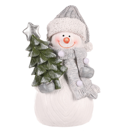 Sněhulák držící stromek - polyresin, LED osvětlení uvnitř.