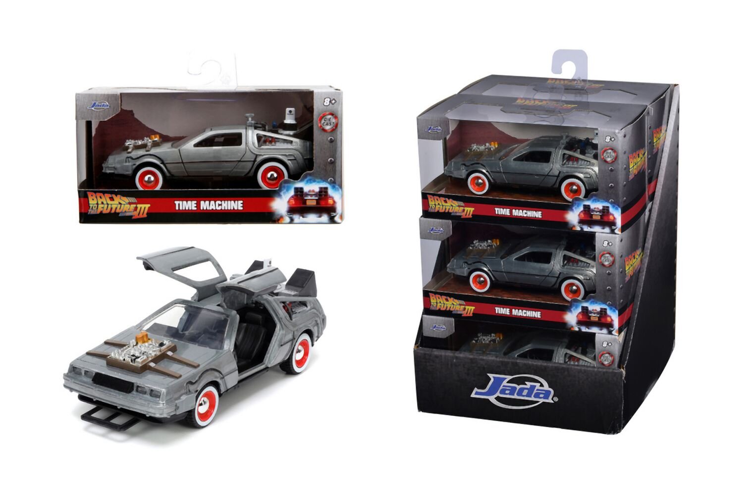 Kovový model Time Machine Back to the Future 3 na volnoběh v měřítku 1:32 s otevíracími dveřmi. Displej obsahuje 6 ks. číst celé