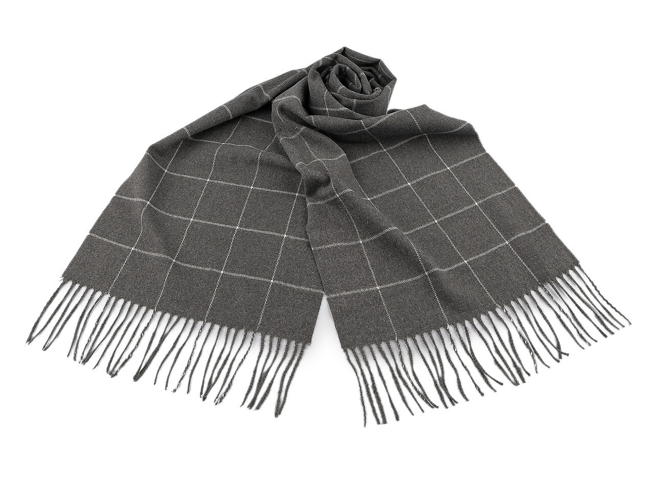Pánská šála s třásněmi káro 30x175 cm - 1 ks - 1 šedá